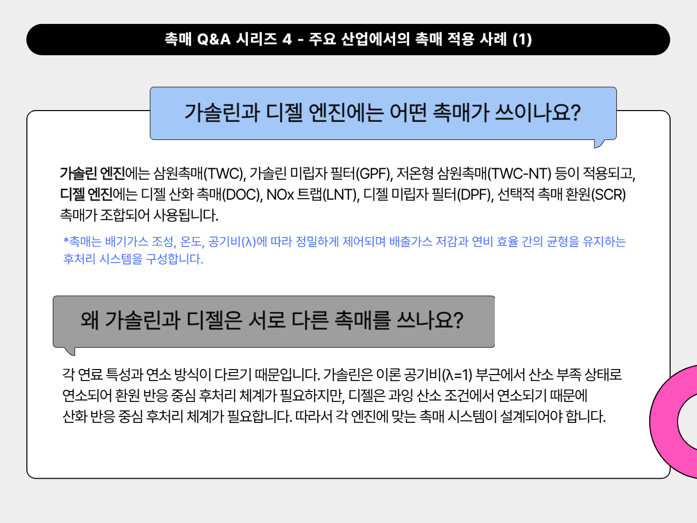 3. 가솔린과 디젤 엔진에는 어떤 촉매가 쓰이나요?