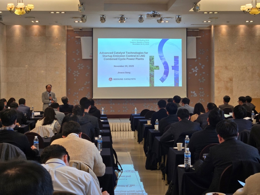 희성촉매는 11월 20일부터 21일까지 대전 선샤인호텔에서 열린 ‘제2회 AC2GTUG(Asian Chapter Advanced Class Gas Turbine User Group) Conference’에서 LNG 복합화력 발전의 기동(Startup) 구간에서 발생하는 오염물질 저감 기술을 발표했습니다. 이번 행사는 미국 전력연구원(EPRI)이 주최하고, 한국전력연구원 및 발전 5개사, 글로벌 가스터빈 제조사 등이 참여한 가운데 약 100여 명의 엔지니어와 전문가들이 함께했습니다.